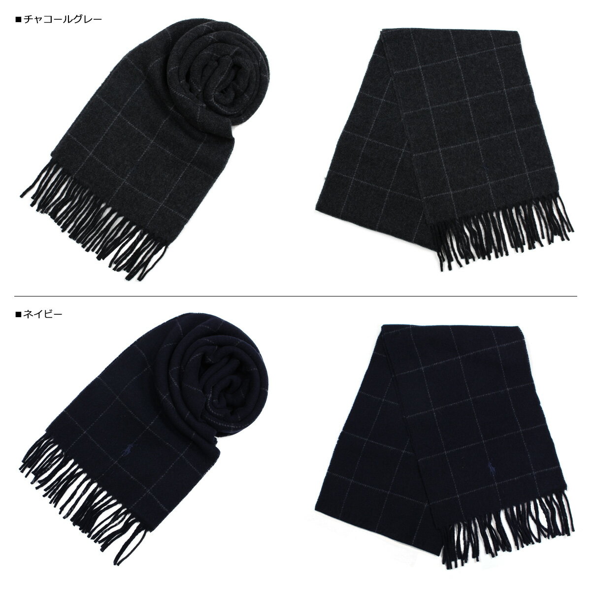 ブランド名 / 商品名 POLO RALPH LAUREN ポロ ラルフローレン / REVERSIBLE WINDWPANE SCARF ORL0159 カラー ブラック:BLACK(001) グレー:GREY(013) チャコールグレー:CHAACOAL HTHR(003) ネイビー:AVIATOR NAVY(410) 素材 ウール80% ナイロン20% 生産国 ITALY サイズ 全長×幅×フリンジ(cm) ONE SIZE:180×26×8.5 ご購入前に必ずお読みください サイズについて 平置きして採寸したサイズになります。