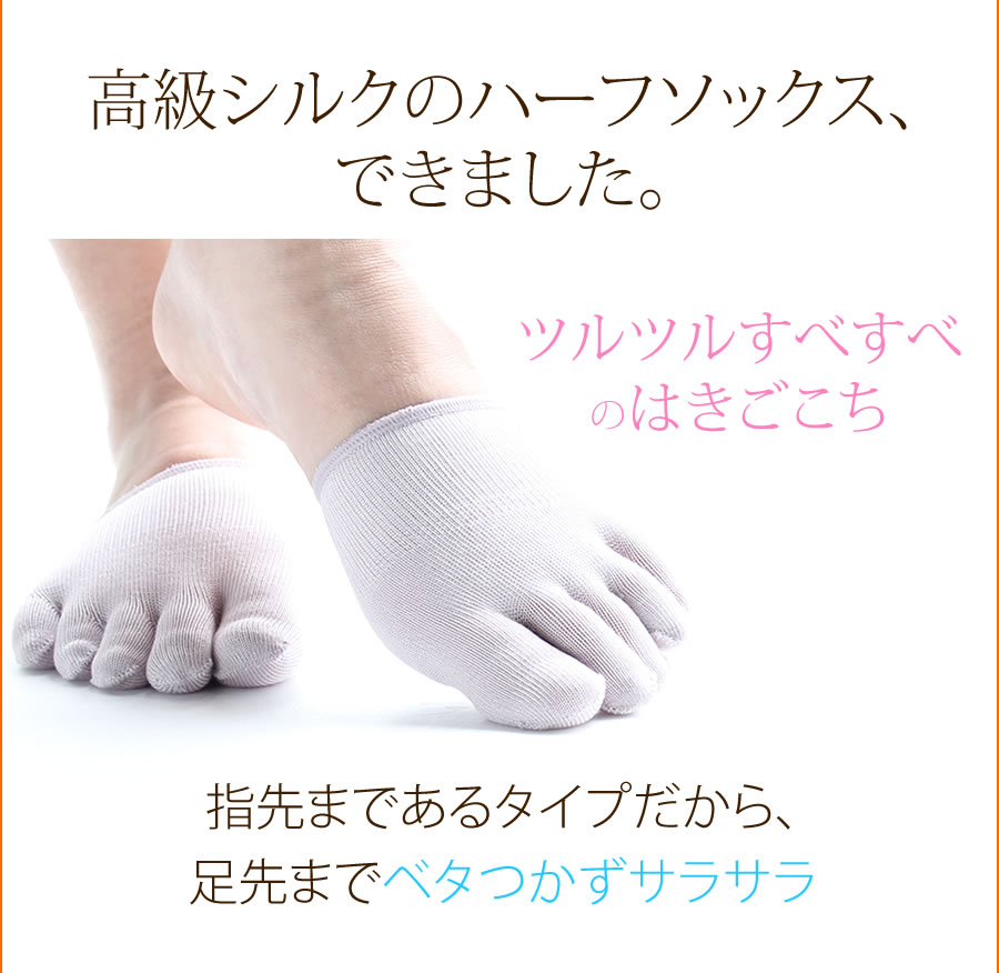 このハーフソックスには、当店一番人気の肌シルクに使用しているシルクより ワンランク上の絹紡糸を使用しています。